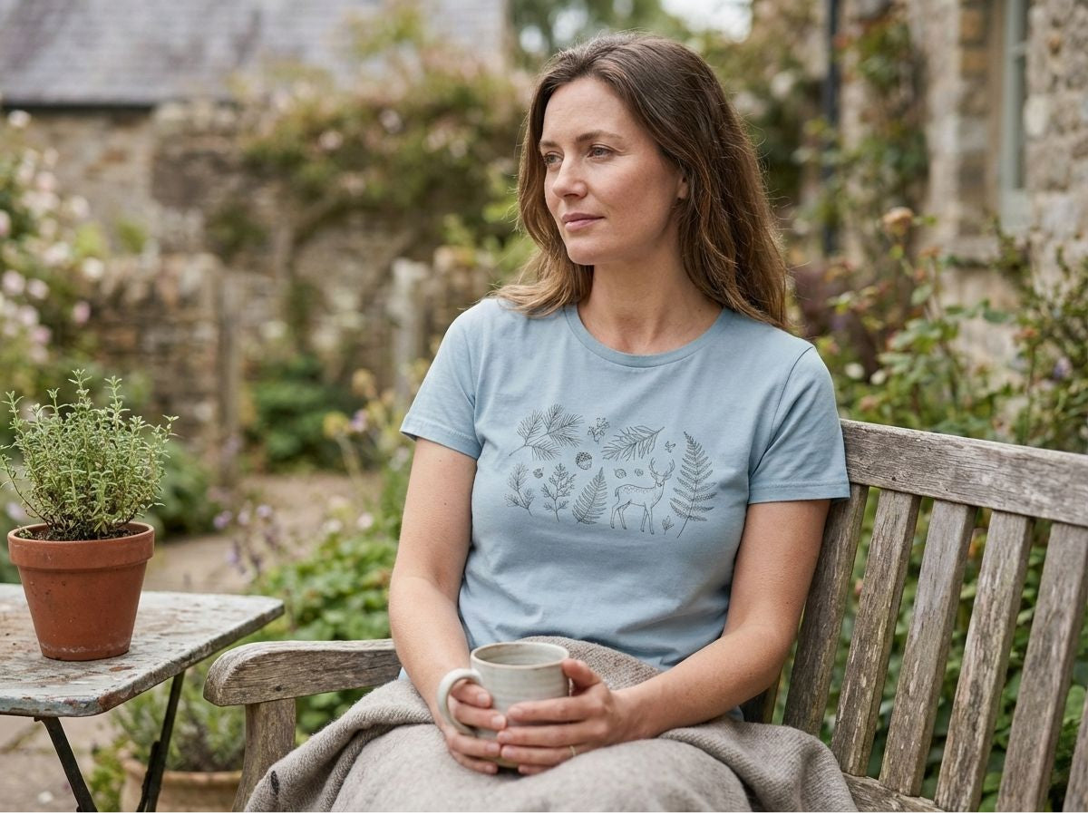 This is the tee you reach for without thinking. Soft from the first wear. Breathable for long days. Comfortable enough to live in — from garden mornings to porch evenings.